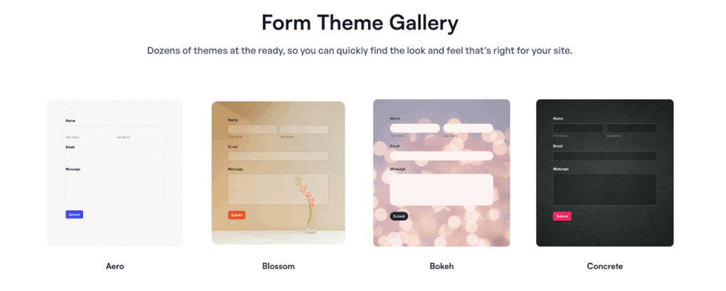 Aber auch! Sie haben direkt im Formular-Generator Zugriff auf Formular-Themes, was bedeutet, dass Sie mit einem Klick professionell gestaltete Farben, Bilder und Stile anwenden können, um Ihre Formulare markengerecht zu gestalten.