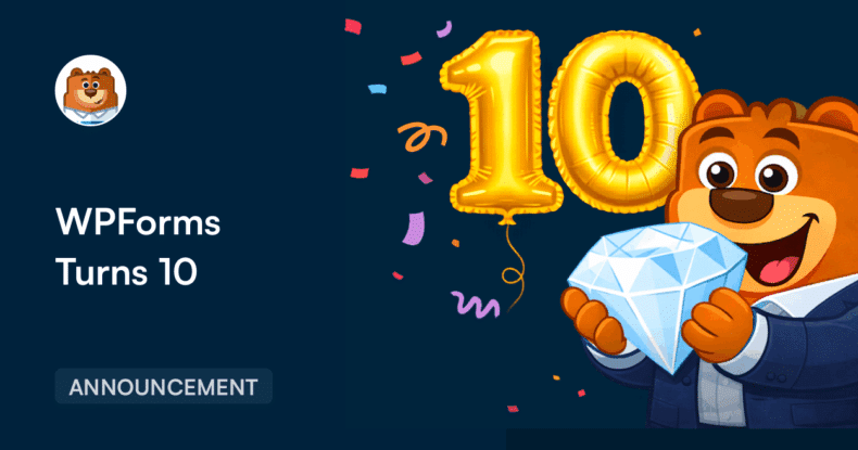 Dix ans passés à créer des formulaires. Dix ans passés à écouter vos commentaires et à essayer d'améliorer notre plugin à chaque nouvelle version. Rien de tout cela n'aurait été possible sans vous, qui utilisez WPForms au quotidien.