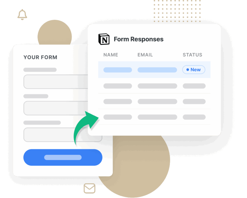 Notionアドオンは、コンタクトリード、タスクリクエスト、サポートチケットなどのフォーム送信内容を、選択したNotionデータベースにシームレスに連携します。これにより自動的に新規ページが作成され、簡単に追跡できます。